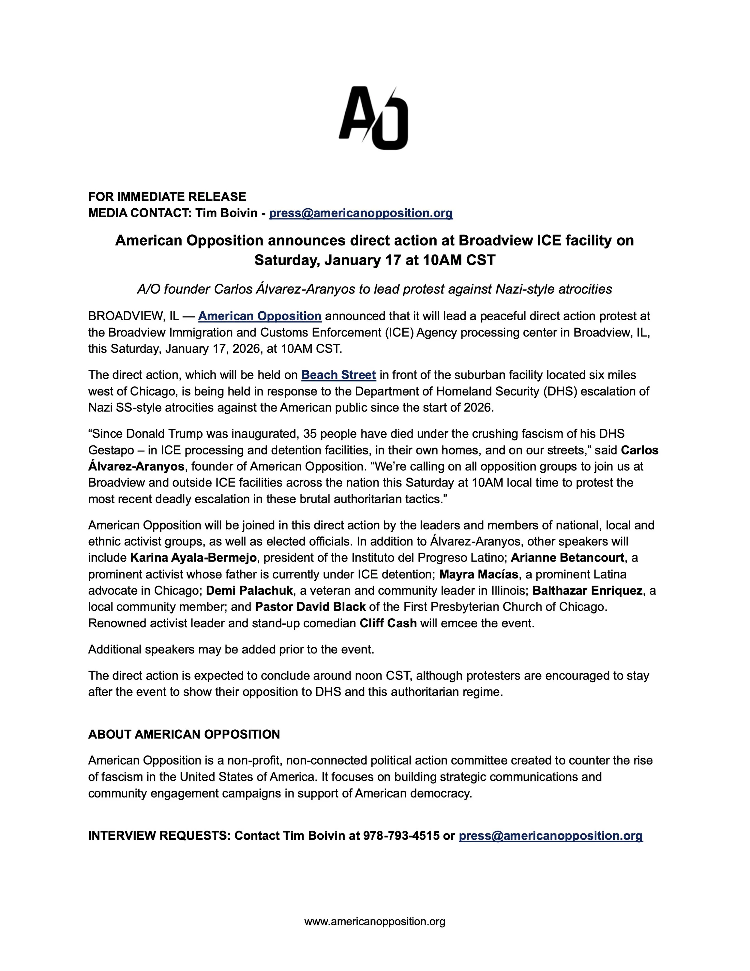 We led protest at the notorious ICE detention facility in Broadview, Illinois featuring Hispanic civic leaders, elected officials and movement leaders. The protest addressed ICE’s treatment of migrants, legal residents, and citizens, as well as the Trump administration’s policies regarding the use of foreign concentration camps (like CECOT in El Salvador) and the illegal invasion of Venezuela.