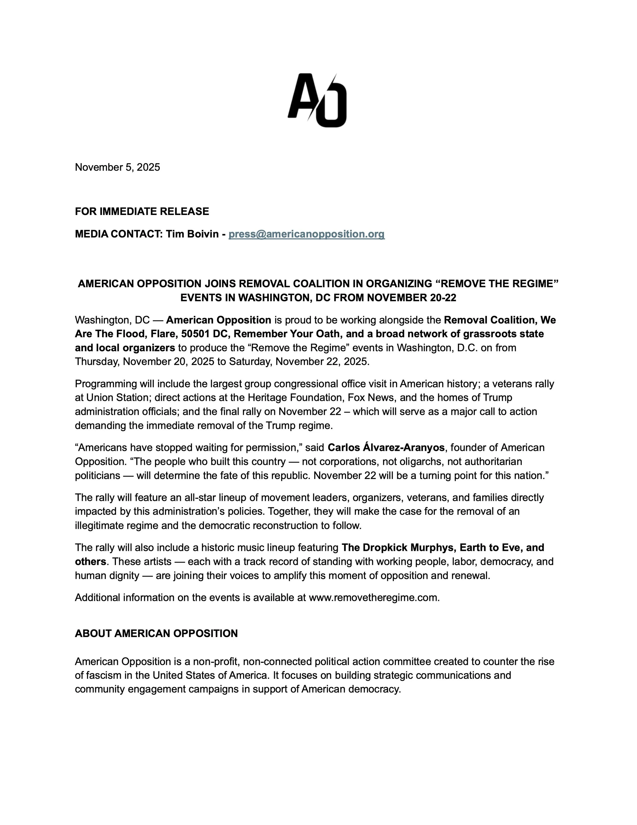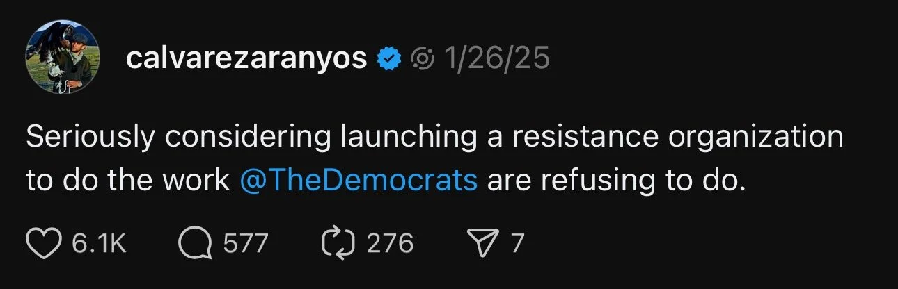 Our founder posted a thread announcing that he was considering launching American Opposition on January 26, 2025. Less than 24 hours later, the organization was born.