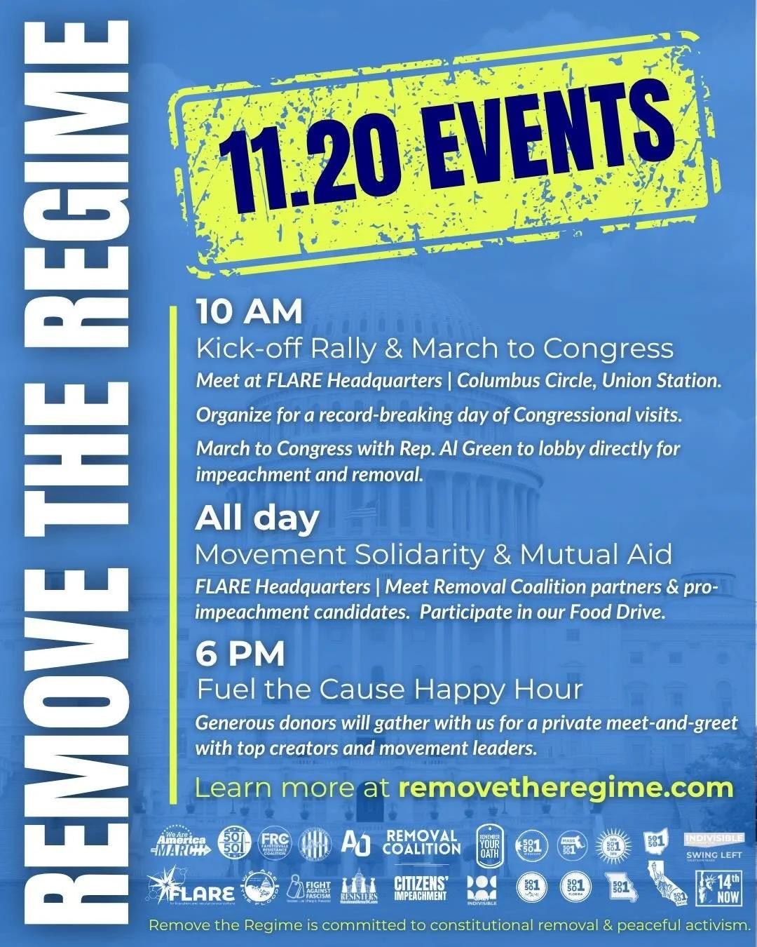 We partnered with Jessica Denson, Cliff Cash, the Removal Coalition, and Mayday Movement to deliver a protest at Union Station. We were joined by Rep. Al Green, Rep. Shri Tanadar, Commander Phil Ehr, and many others.